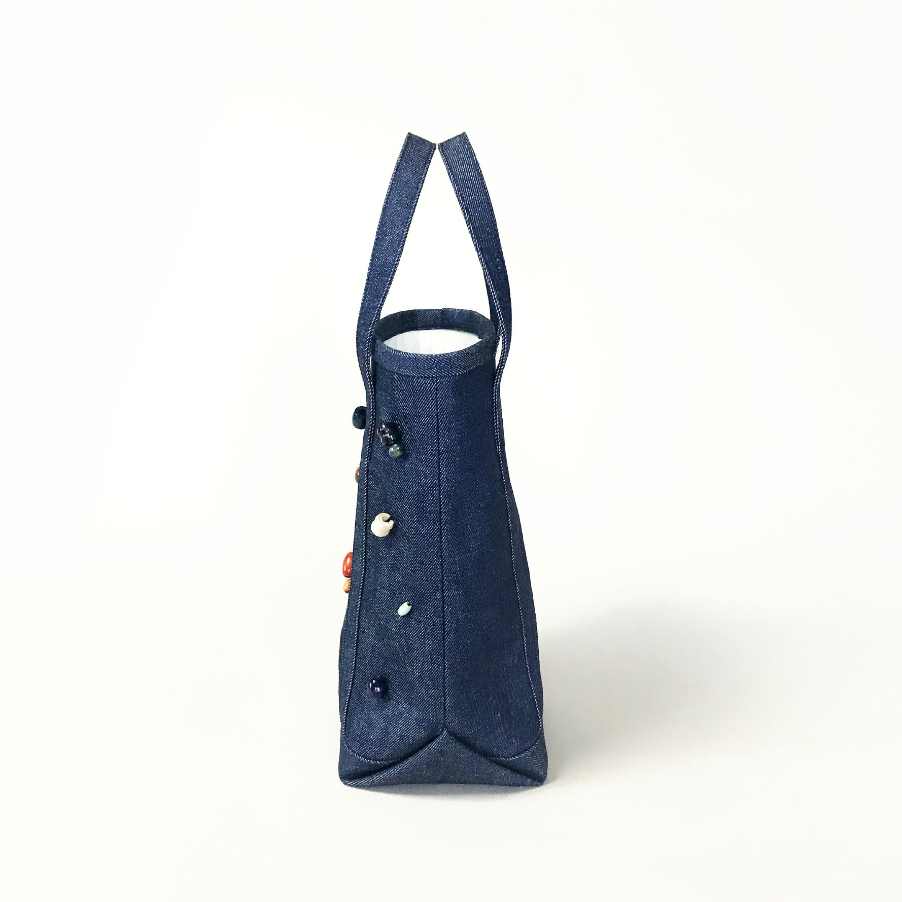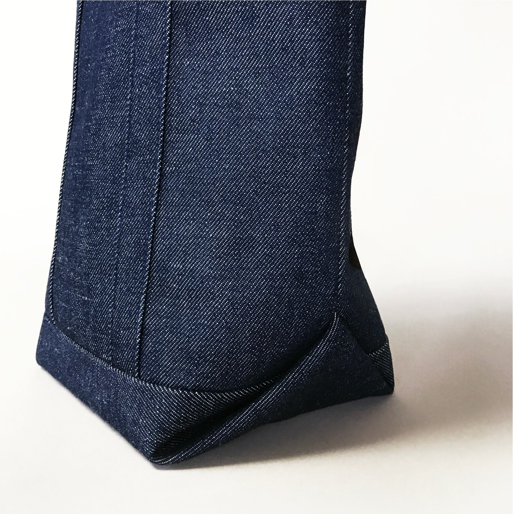 シンプルなトートバッグのデザインながら、一風変わった縦長のフォルムが存在感あふれる一品。