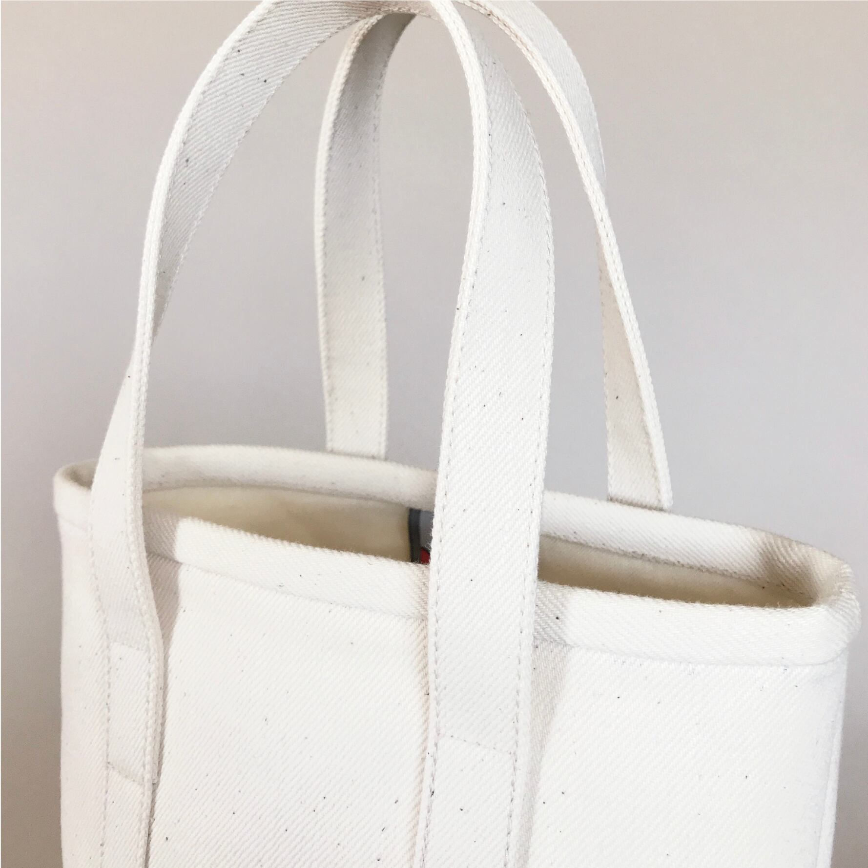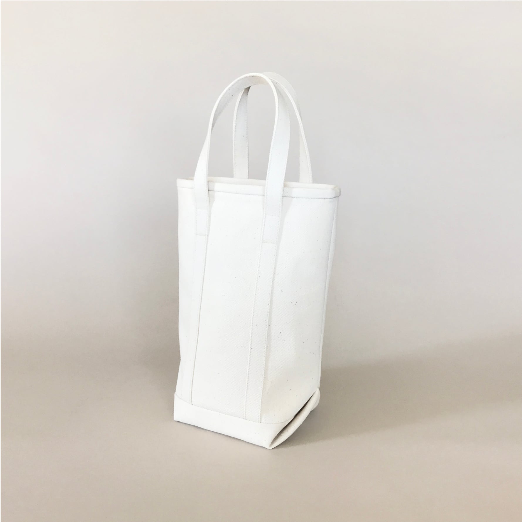 シンプルなトートバッグのデザインながら、一風変わった縦長のフォルムが存在感あふれる一品。