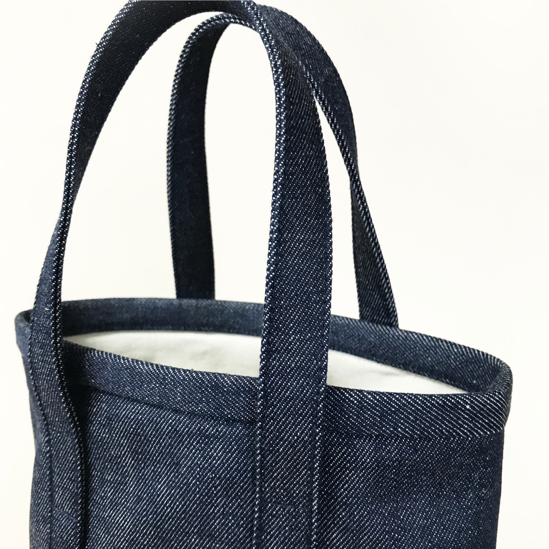 開口部のパイピング、底の切り替え部分をステッチレスにし、さらに内側に裏地を付けることにより、上品さを引き立てた雰囲気に。