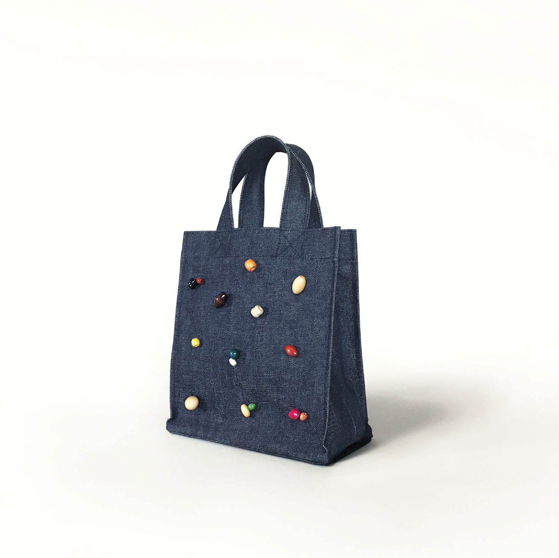 底部には同素材のデニムで包んだ底板を備えており、重みのある物を入れてもバッグの形が崩れにくくなっています。