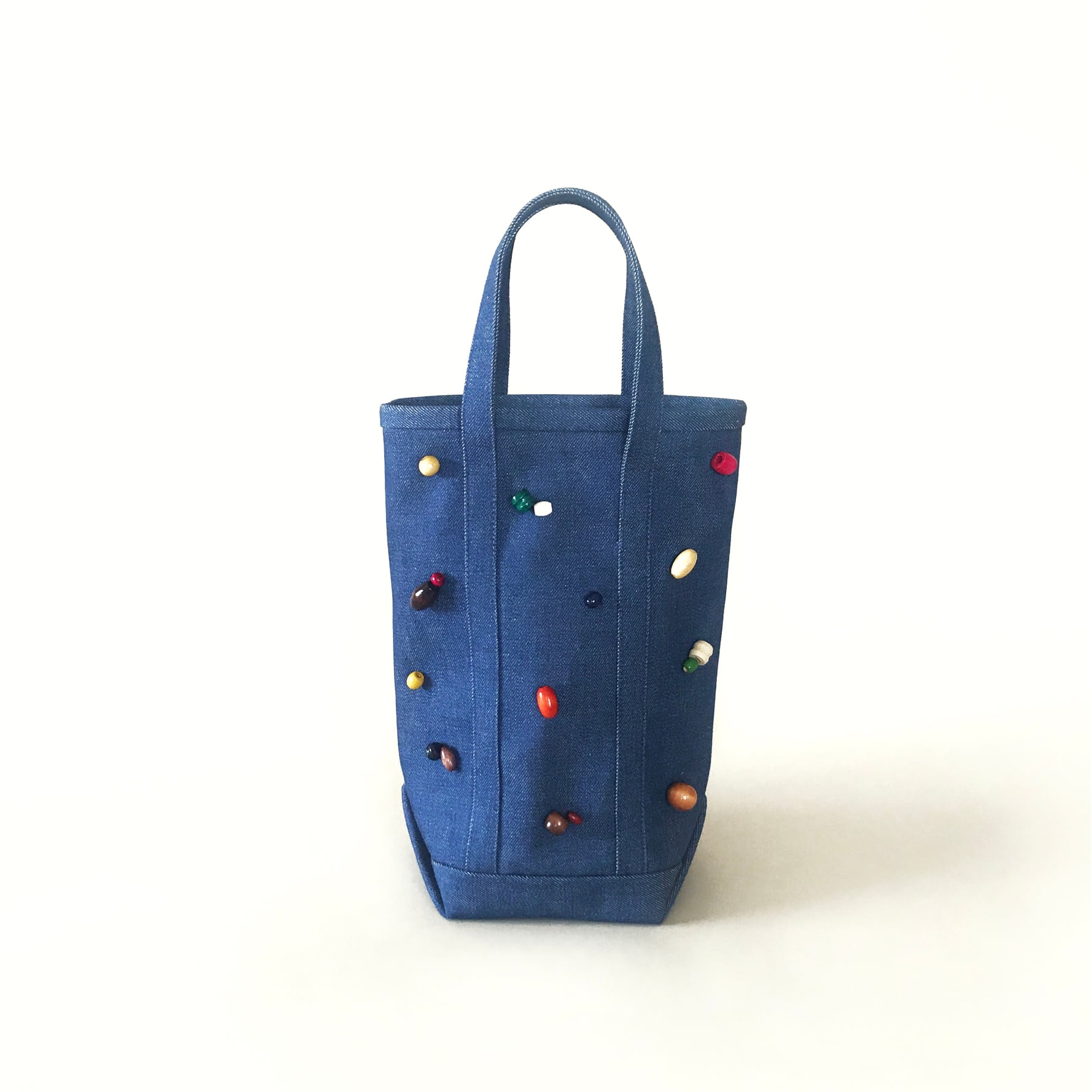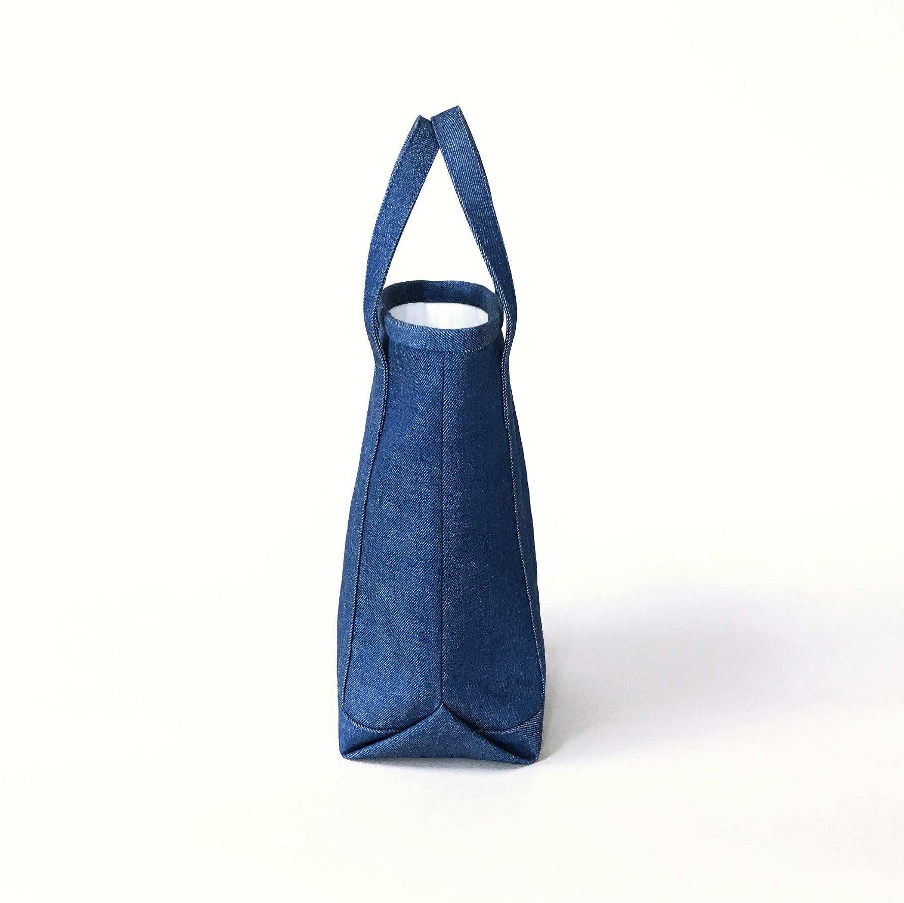 シンプルなトートバッグのデザインながら、一風変わった縦長のフォルムが存在感あふれる一品。