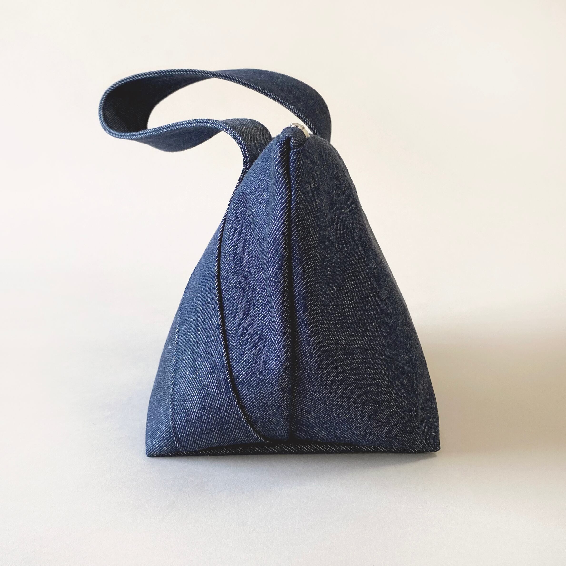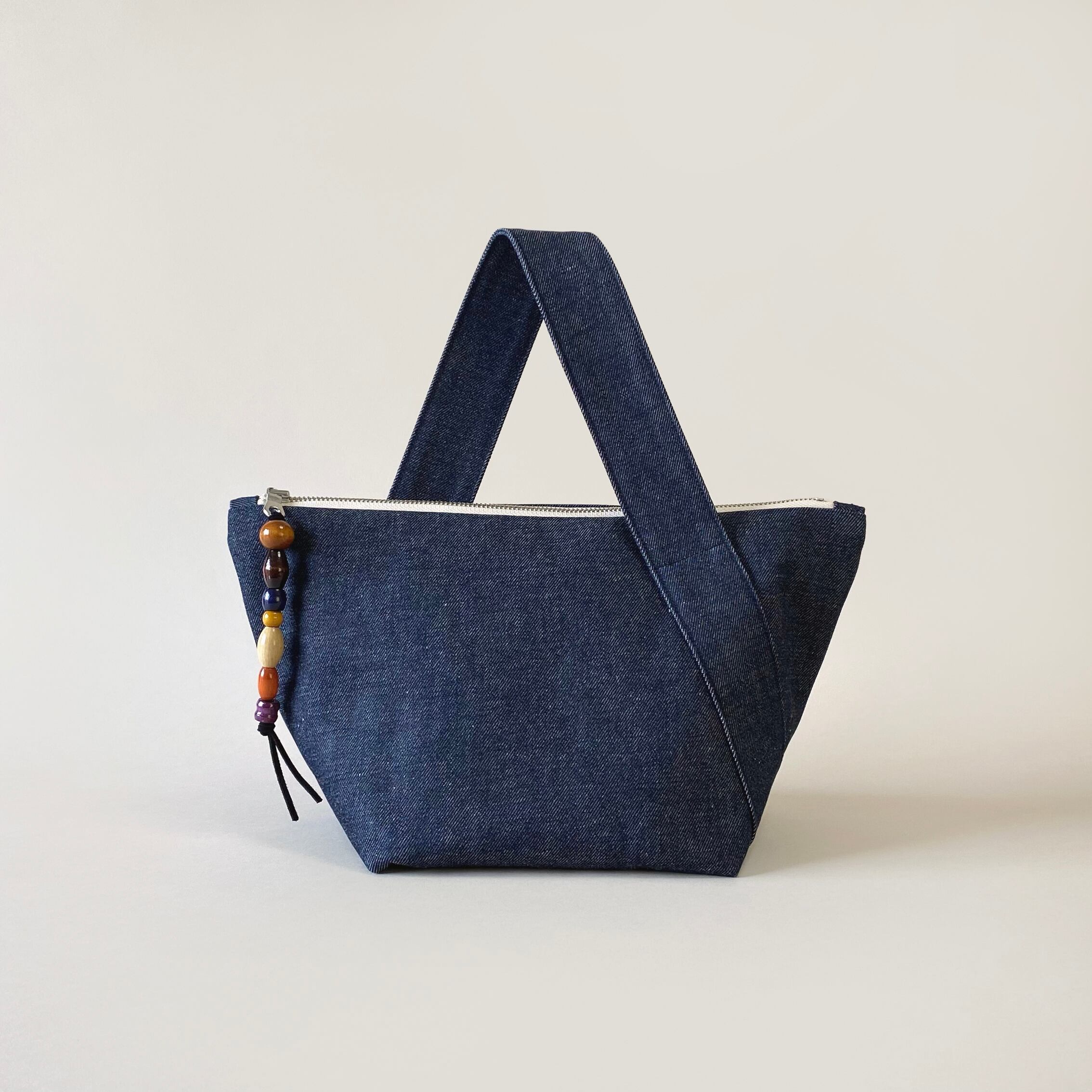 前から後ろへ、アーチを描く1本のハンドルが特徴のミニバッグ "Palette" に、デニムが登場。