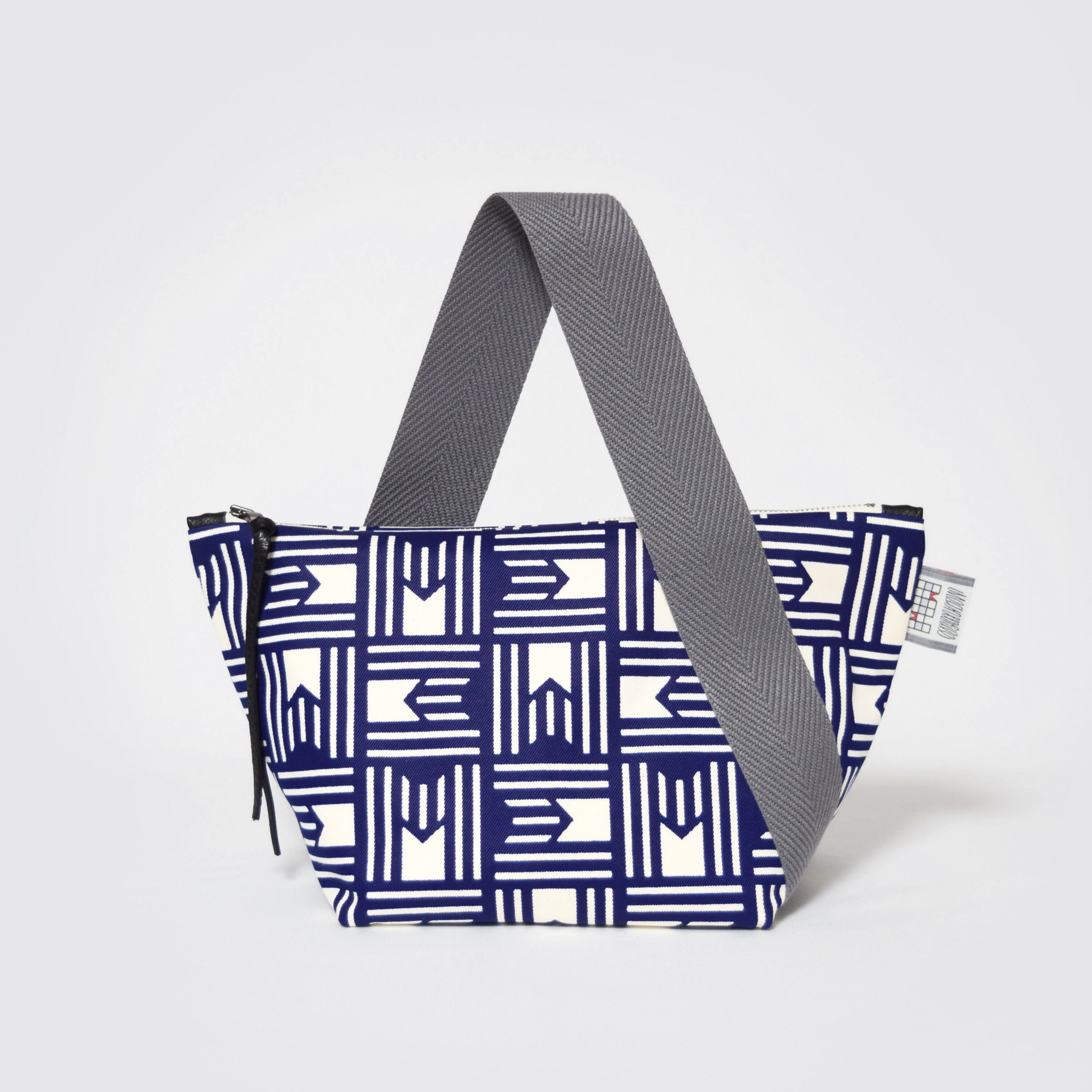 前から後ろへ、アーチを描く1本のハンドルが特徴のミニバッグ。