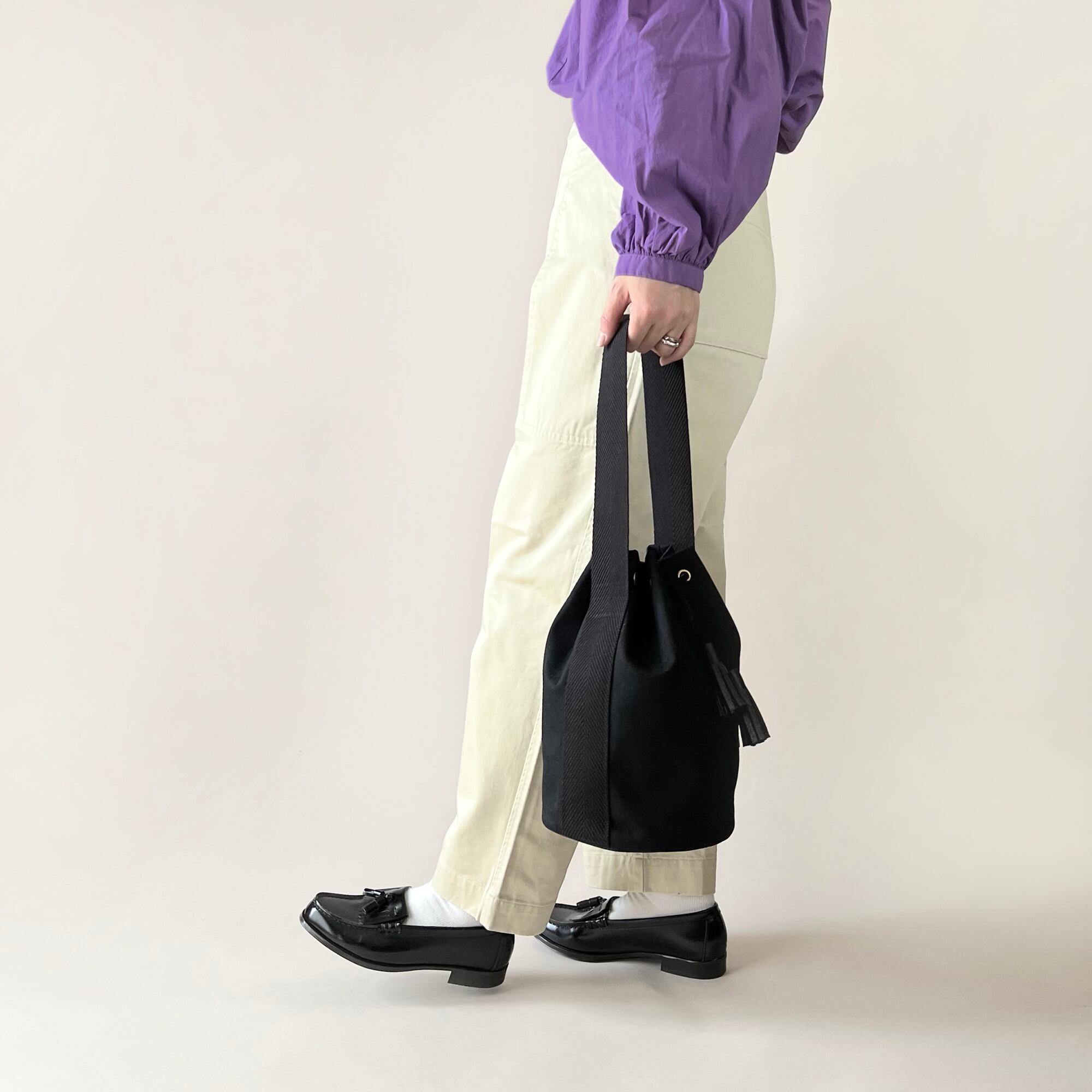 タッセルと底部分に用いたレザーがさりげなく上品な佇まいを演出します。