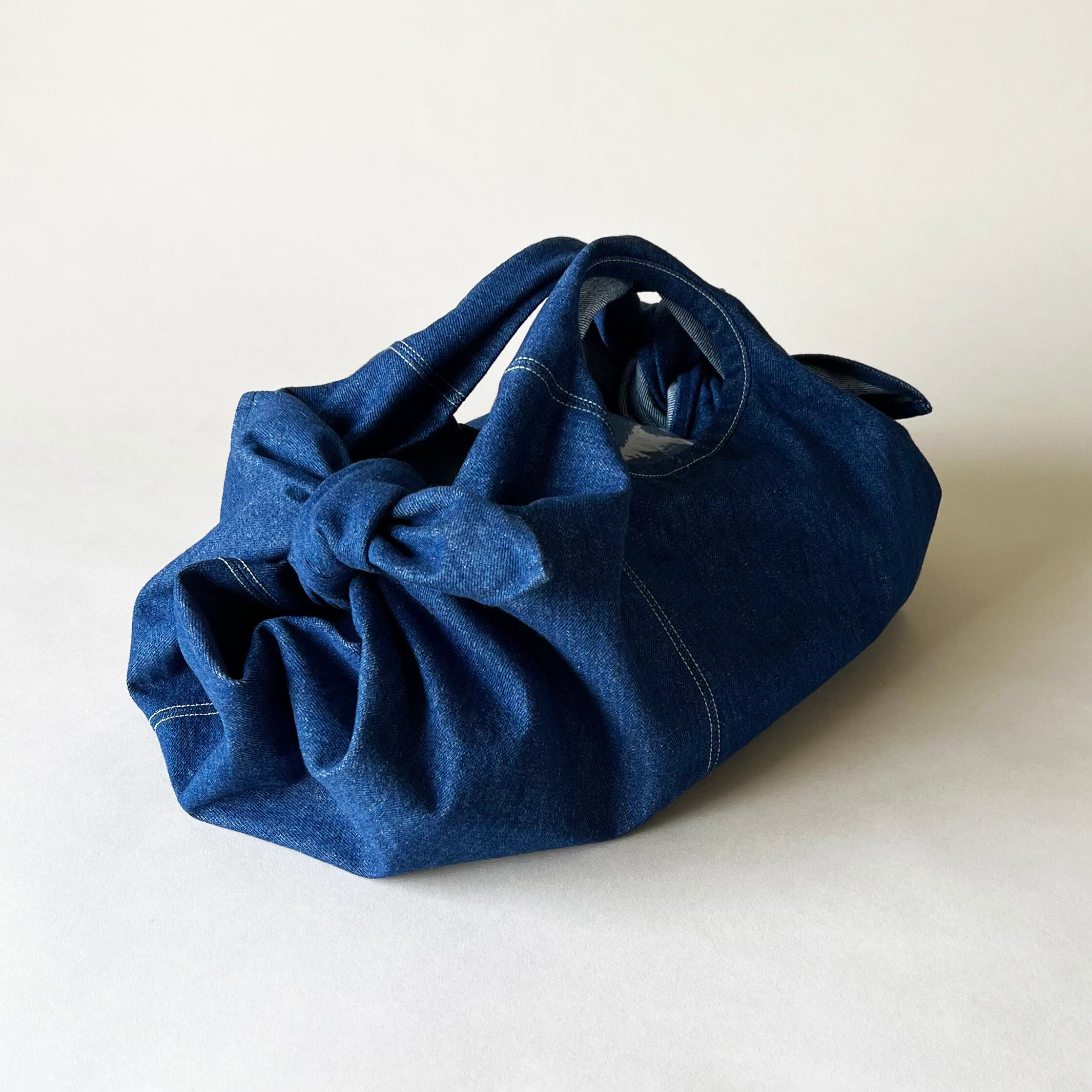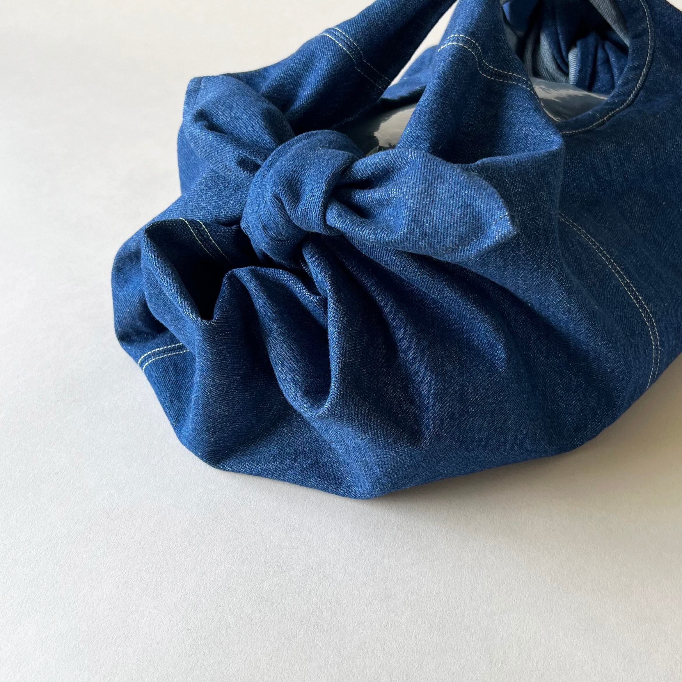 1枚の四角い布の端と端を結んで形成された、ドレープたっぷりのくしゅくしゅっとしたフォルムが魅力。