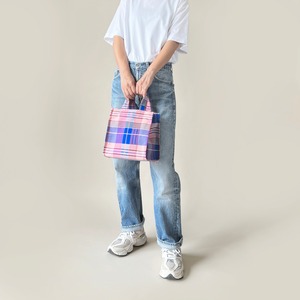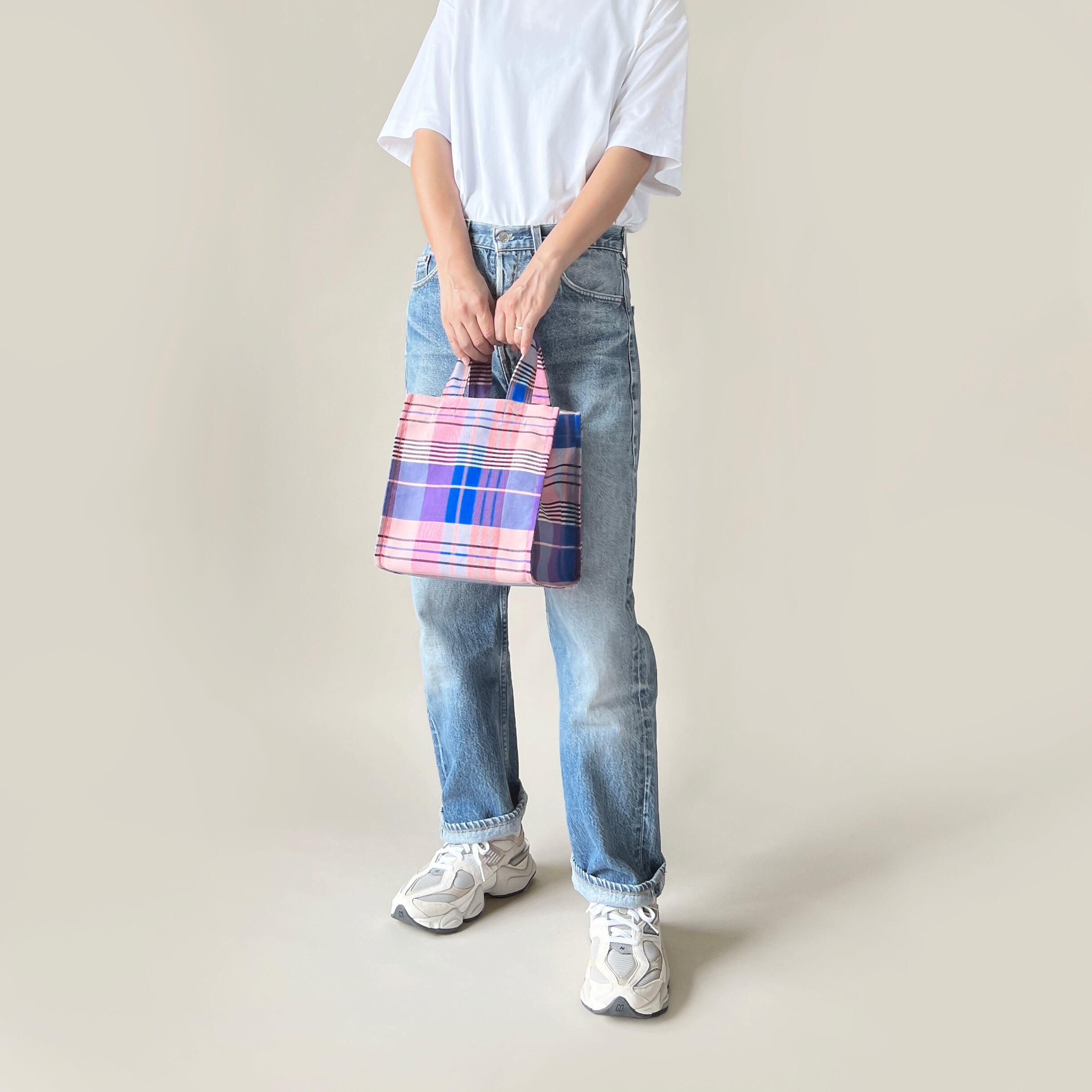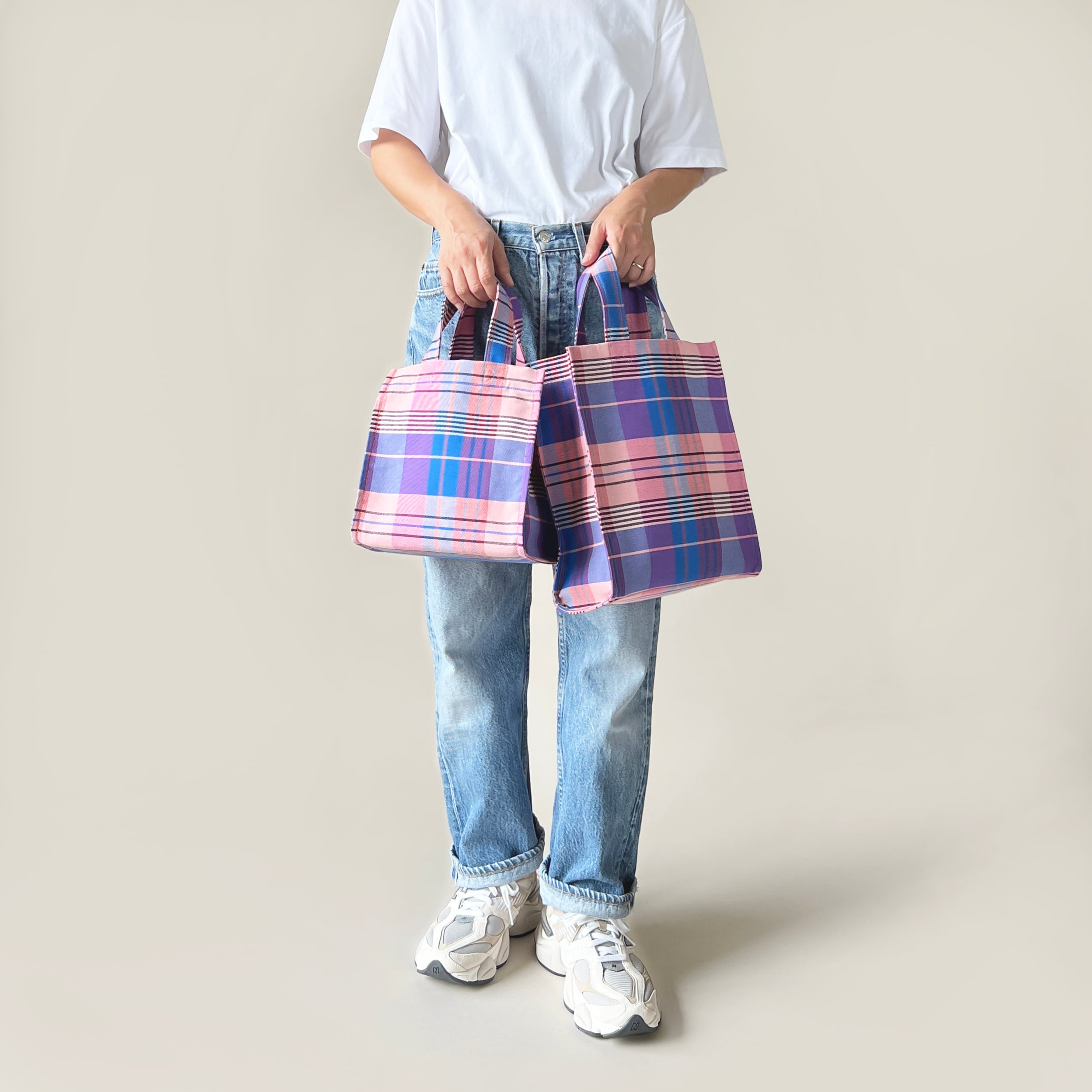 ピンクベースのマルチチェックが目を引くトートバッグ。