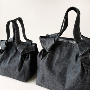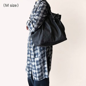ステッチワークを効かせ、しっかりとした作りでありながら、ギュッと結んだ持ち手と、タックをとることで現れる立体的な膨らみが、程よい甘さと上品な印象を引き立てる。