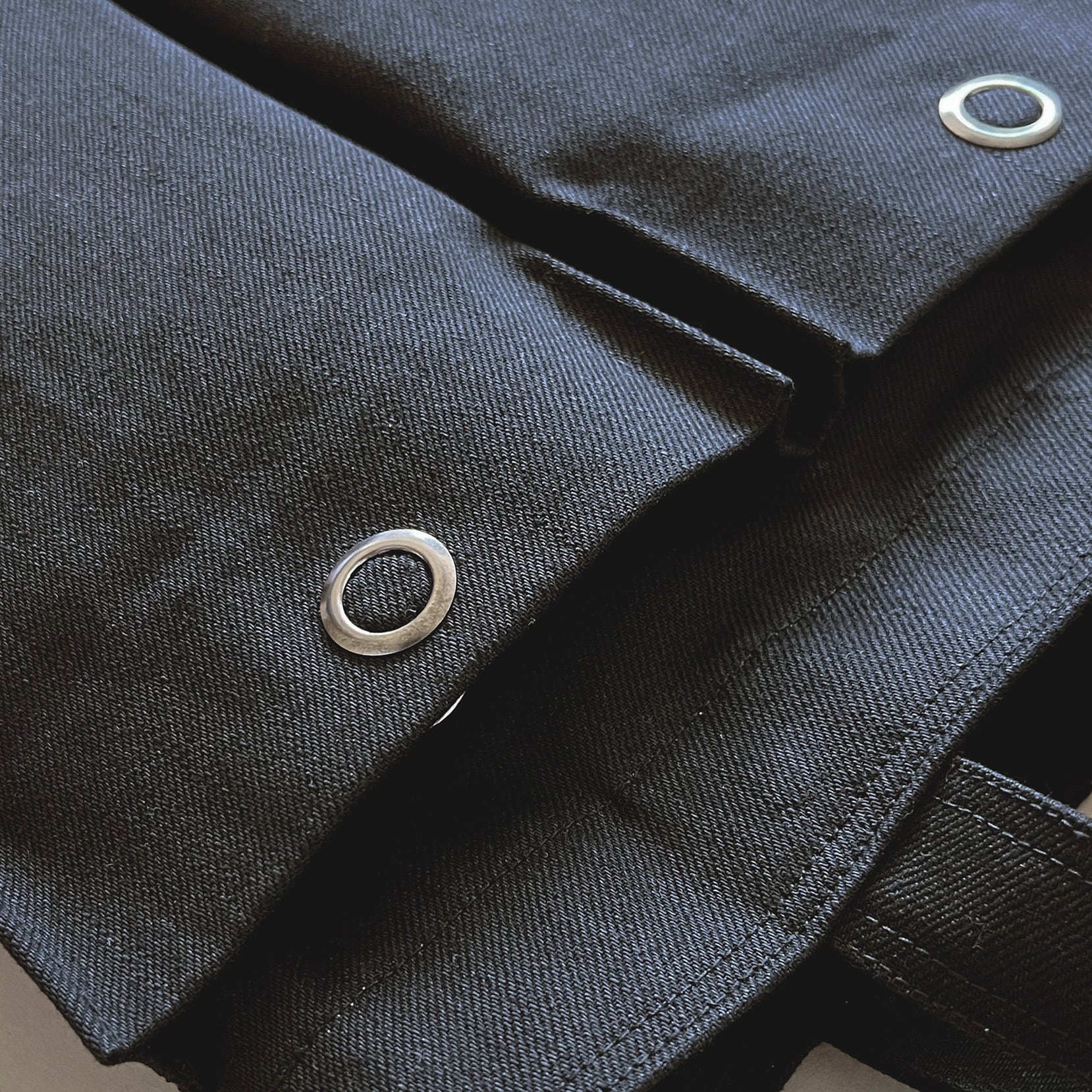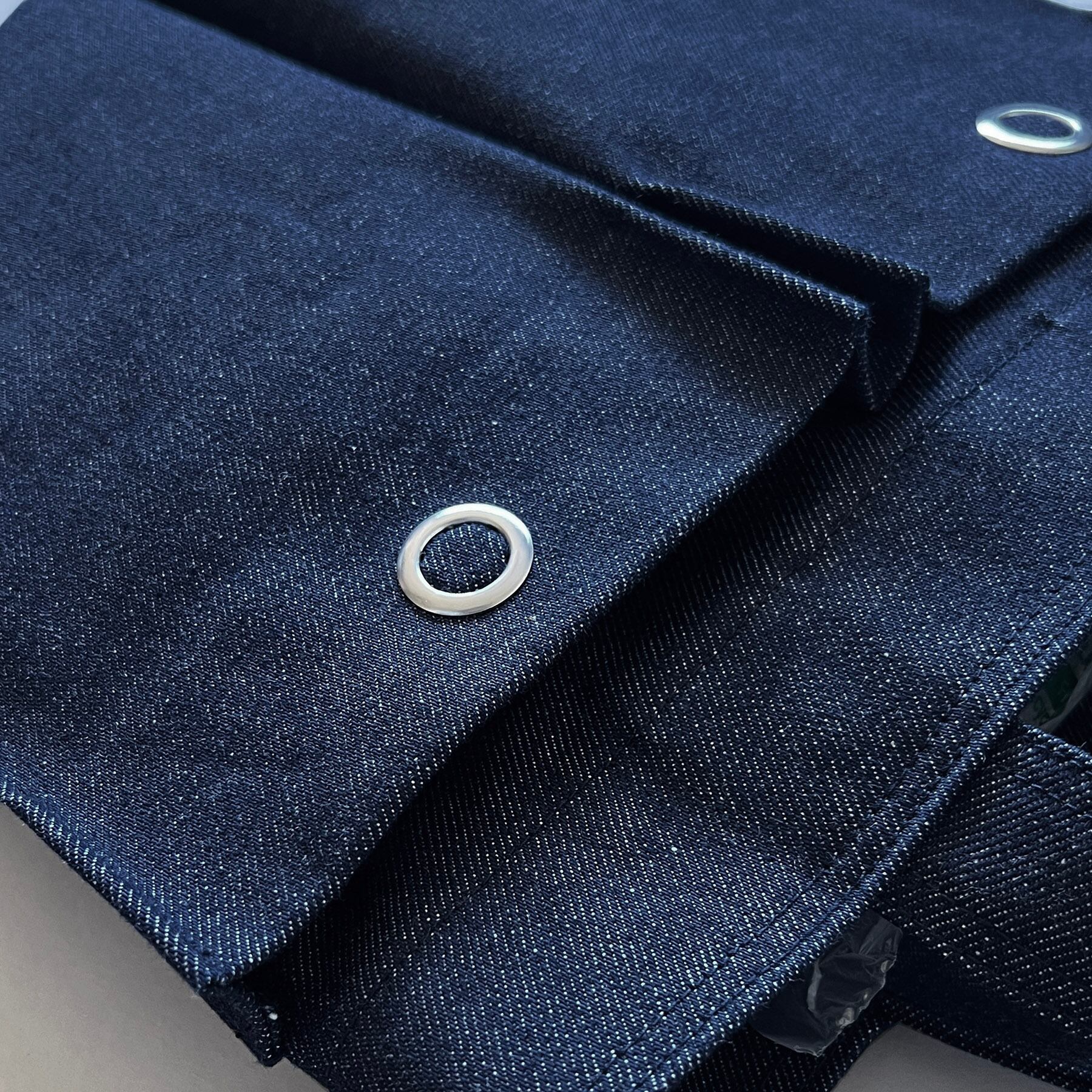 素材はクリアな表面感で、きれいめな印象に織られた国産デニムを使用。しっかりとしたオンスのデニムでありながら、しなやかさと上品な光沢感があるのがポイントです。