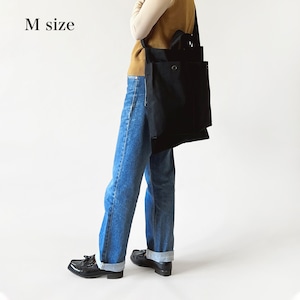 フロントポケットに付いた大きめのフラットリングボタンがさりげないアクセントに。