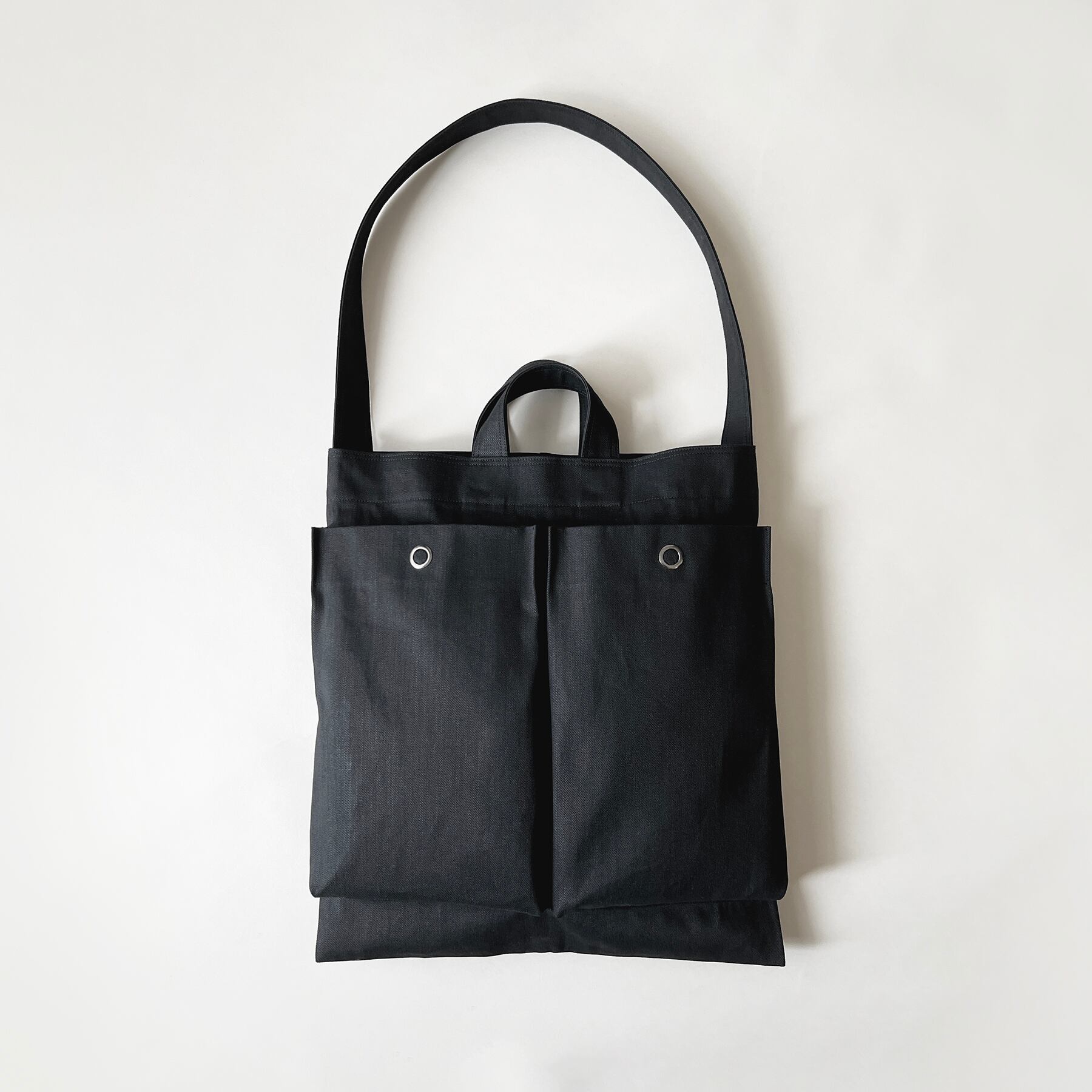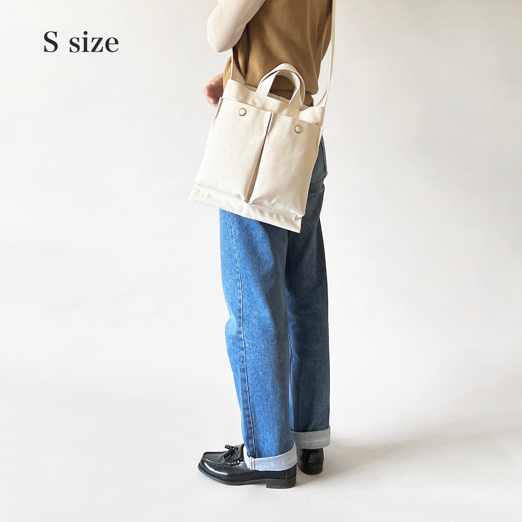ミリタリーの定番アイテム、ヘルメットバッグをモチーフに、ミニマルで上品な印象に落とし込んだショルダーバッグ。