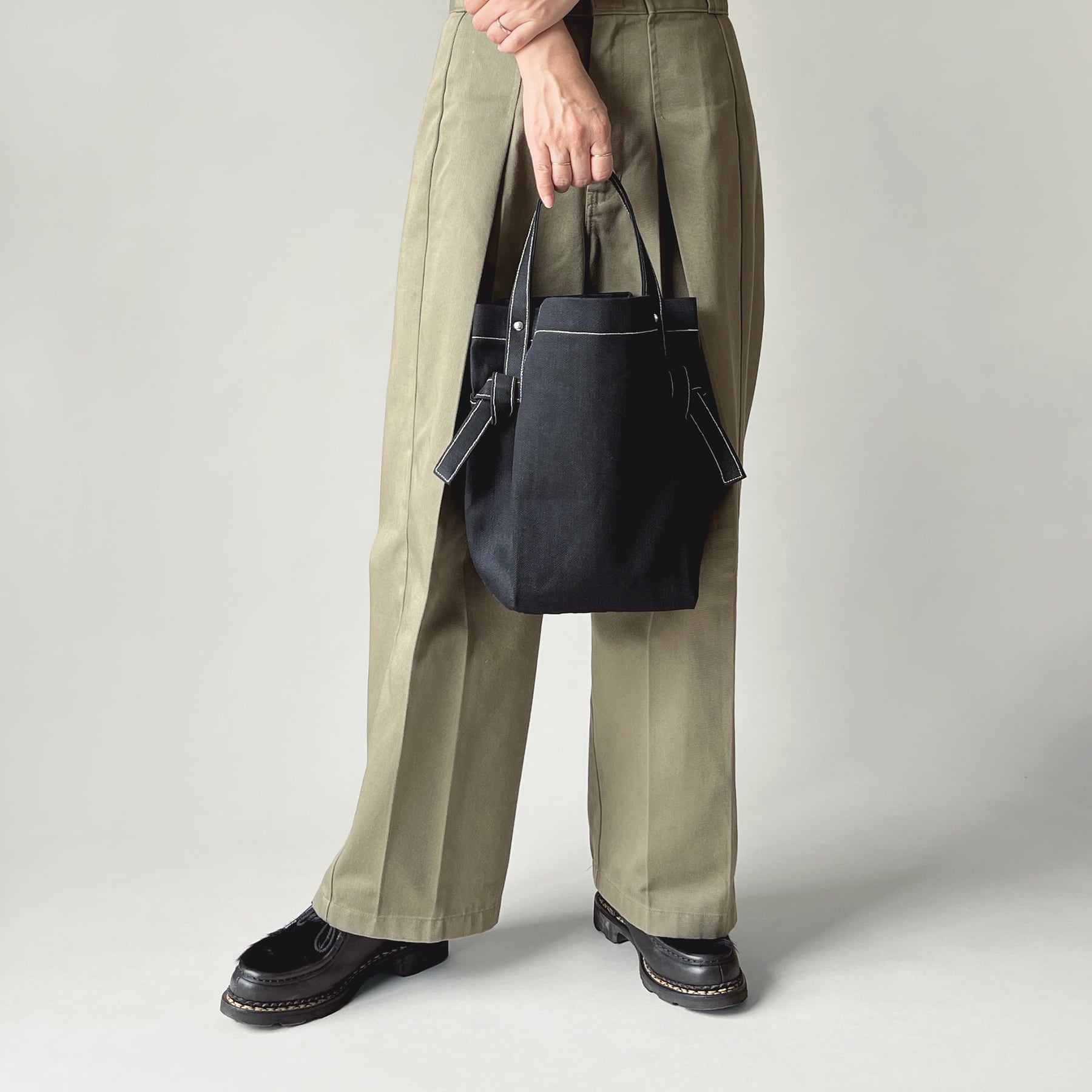 底にはしっかりとしたスクエア型のマチがあり、長財布、500mlのペットボトルやタンブラーなどが入り使いやすさはもちろん、見た目以上の収納力も嬉しいポイント。